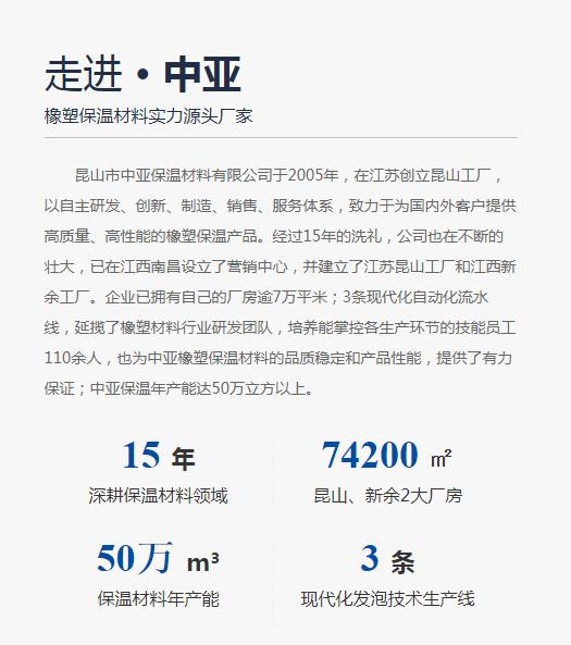 -中亞保溫材料有限公司是集研發(fā)、生產、銷售橡塑保溫材料、橡塑保溫管材、橡塑保溫板材、復合橡塑保溫材料、殼護保溫外護材料為一體的集團企業(yè)。
