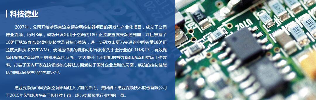 寧波德業(yè)變頻技術(shù)股份有限公司成立于2007年,注冊資金20500萬元,員工300余人,隸屬于寧波德業(yè)科技股份有限公司,是國內(nèi)最早專注于太陽能逆變器、太陽能空調(diào)、變頻暖風(fēng)機(jī)的研發(fā)、生產(chǎn)、銷售的高新技術(shù)企業(yè),已通過國家的雙軟企業(yè)認(rèn)證,擁有省級高新技術(shù)企業(yè)研究開發(fā)中心,擁有國內(nèi)變頻空調(diào)、太陽能逆變器、暖風(fēng)機(jī)生產(chǎn)基地,是集高精設(shè)備、高素質(zhì)科技人才、先進(jìn)管理技術(shù)、豐富產(chǎn)業(yè)鏈資源為一體的高科技生產(chǎn)廠家。