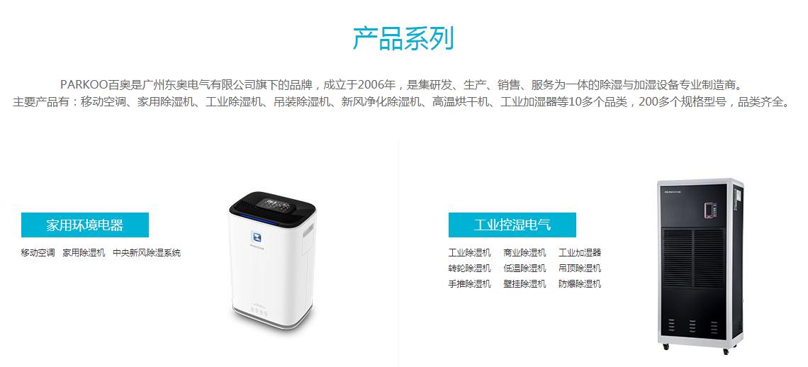 廣州東奧電氣有限公司成立于2006年,注冊(cè)商標(biāo)“PARKOO百奧”,是環(huán)境電器和工業(yè)空調(diào)專業(yè)制造商。主要產(chǎn)品有:移動(dòng)空調(diào)、新風(fēng)凈化除濕機(jī)系統(tǒng)、家用除濕機(jī)、工業(yè)除濕機(jī)、恒溫恒濕系統(tǒng)、節(jié)能烘干設(shè)備等產(chǎn)品,適用于家用、商用和工業(yè)等各個(gè)領(lǐng)域,顯著改善生產(chǎn)和生活環(huán)境,贏得了客戶的一致認(rèn)可。