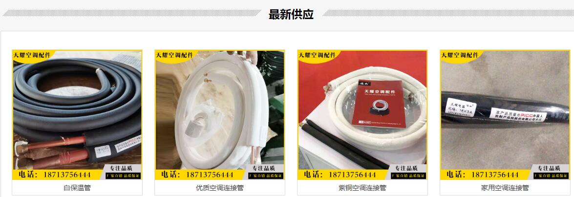 任丘市天耀空調(diào)配件有限公司是國(guó)內(nèi)生產(chǎn)空調(diào)連接管、空調(diào)室內(nèi)機(jī)掛板、空調(diào)銅管、冰箱冰柜干燥過濾器、空調(diào)打孔防塵袋、空調(diào)冷庫銅鋁接頭等的大型生產(chǎn)廠家。2019年連續(xù)參展印度、泰國(guó)、土耳其、印尼等國(guó)際暖通制冷行業(yè)展。