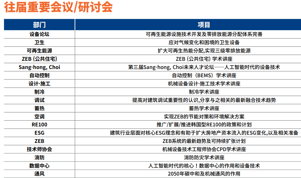 一年一屆的韓國(guó)國(guó)際暖通、空調(diào)制冷、管道、機(jī)械展覽會(huì)HVAC KOREA,該展覽會(huì)由韓國(guó)機(jī)械設(shè)備建設(shè)協(xié)會(huì),韓國(guó)設(shè)備工學(xué)會(huì),韓國(guó)設(shè)備技術(shù)協(xié)會(huì),韓國(guó)設(shè)備設(shè)計(jì)協(xié)會(huì),韓國(guó)機(jī)械設(shè)備技術(shù)工程師協(xié)會(huì)主 辦,LH(韓國(guó)土地住宅公社),韓國(guó)綜合建設(shè)機(jī)械設(shè)備協(xié)會(huì)和機(jī)械工程師協(xié)會(huì)贊助,并組織展館構(gòu)建,舉辦會(huì)議/研討會(huì),以及 為機(jī)械設(shè)備專(zhuān)業(yè)人士舉辦交流招待會(huì),是韓國(guó)唯一一個(gè)綜合性的暖通空調(diào)和管道展覽會(huì),展示了從暖通空調(diào)系統(tǒng)、儲(chǔ)罐和泵到管道的全系列機(jī)械系統(tǒng),閥門(mén)、消防/衛(wèi)生/特種設(shè)備、數(shù)據(jù)中心等。這是一個(gè)獨(dú)特的暖通空調(diào)和管道行業(yè)的主要參與者聚集在一起展覽的平臺(tái),網(wǎng)絡(luò),塑造該領(lǐng)域的未來(lái)。我們邀請(qǐng)您參加韓國(guó)首屈一指的展覽暖通空調(diào)專(zhuān)業(yè)人士!今年為第11屆.它引領(lǐng)機(jī)械設(shè)備行業(yè)最新技術(shù)和趨勢(shì),匯聚眾多行業(yè)專(zhuān)家,此展將成為貴公司發(fā)展的基石